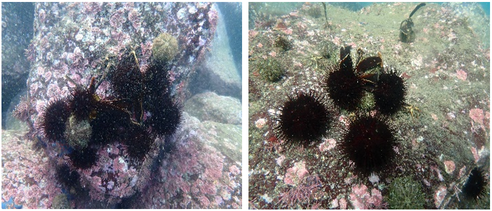 写真2:海藻に群がるウニ
