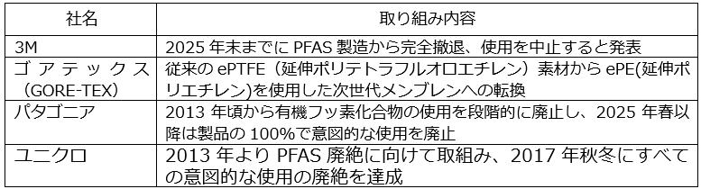 近年では、「PFASフリー」を掲げ、PFOS、PFOA以外も含めた有機フッ素化合物からの脱却への動きが加速しています。